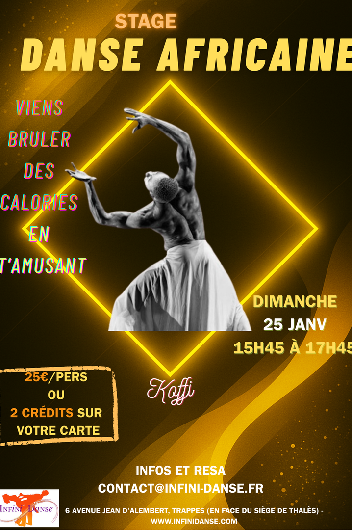 Prix: 25 euros par personne ou 2 crédits sur votre carte de cours Infini Danse.