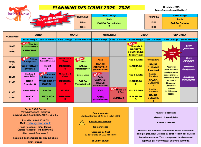 PLANNING DES COURS 2025-2026 pour téléchargement et impression