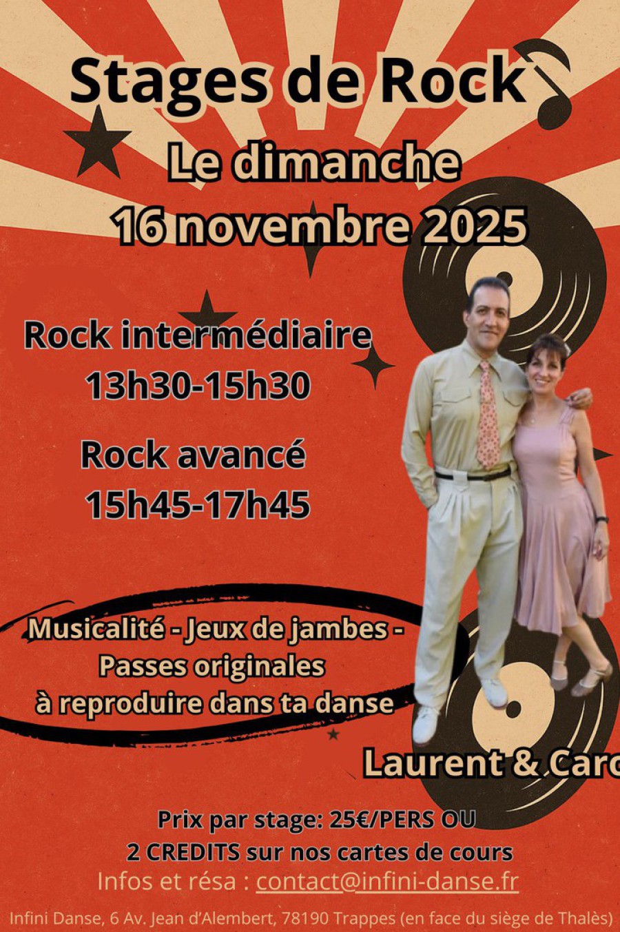 Prix: 25 euros par personne ou 2 crédits sur votre carte de cours Infini Danse